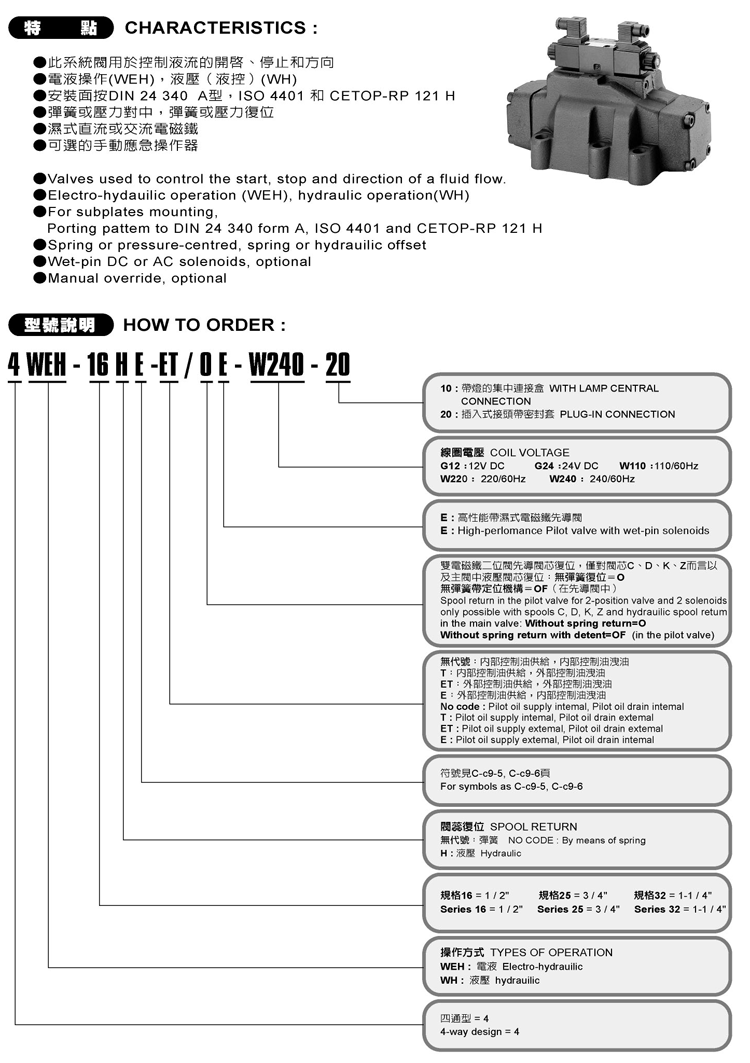 4WEH系列-液控方向閥 4WEH Series -Solenoid Operated Directional Valves 型號 : 4WEH-16